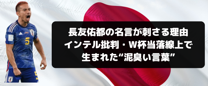 長友佑都の名言が多くの人に刺さる理由は、それがインテルでの激しい批判、W杯直前の当落線上、評価が揺らぐ逆境の中で生まれた言葉だからだ。